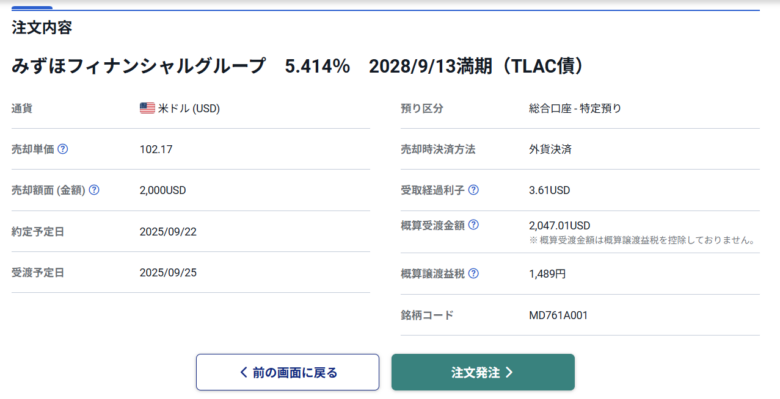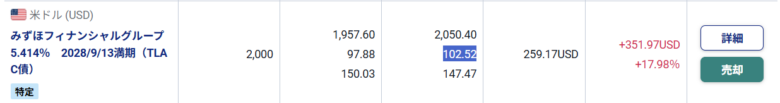 ↑ 売却単価が102.17になっています!(102.52 → 102.17になっている!)