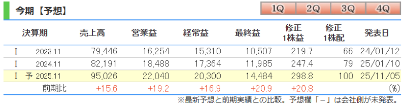 ↓ 売り上げ・利益ともに順調に伸びていて、特に配当の増配率が素晴らしいです👍👍👍