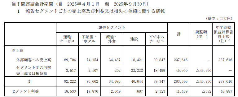 ↑ 本業の運輸が安定して伸びている(値上げ効果)のと、不動産・ホテルの伸びが著しいですね!