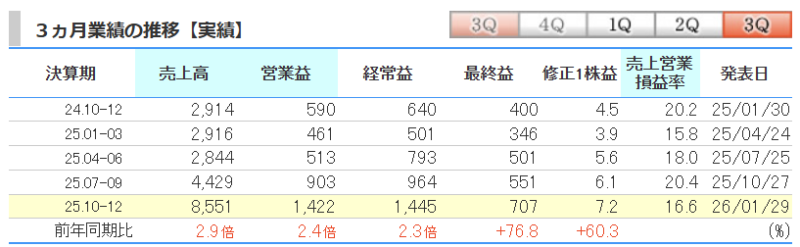 月次を開示しているので、3Qの売り上げは大丈夫と思っていたが 経常利益が良かったのはポジティブサプライズです!