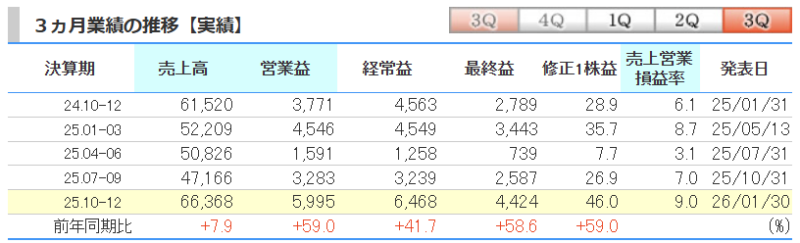 今週から保有株の3月決算企業の3Q決算発表がボチボチ始まっています!