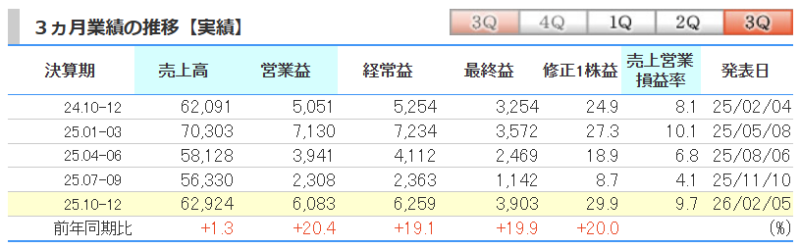 ↑ 4%減益の下方修正ですが、3Qだけで見ればわりと良い内容だと思う🤔