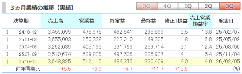 短期目線: 第3四半期時点での利益進捗が非常に良いため、本決算での「増配」を先読みした買いを検討!