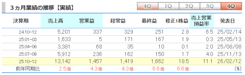 をメインに考える訳ですが、本業の業績が順調なのかを一番重要視しています!