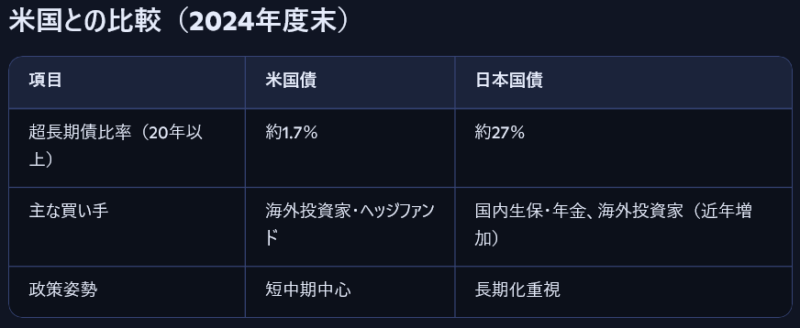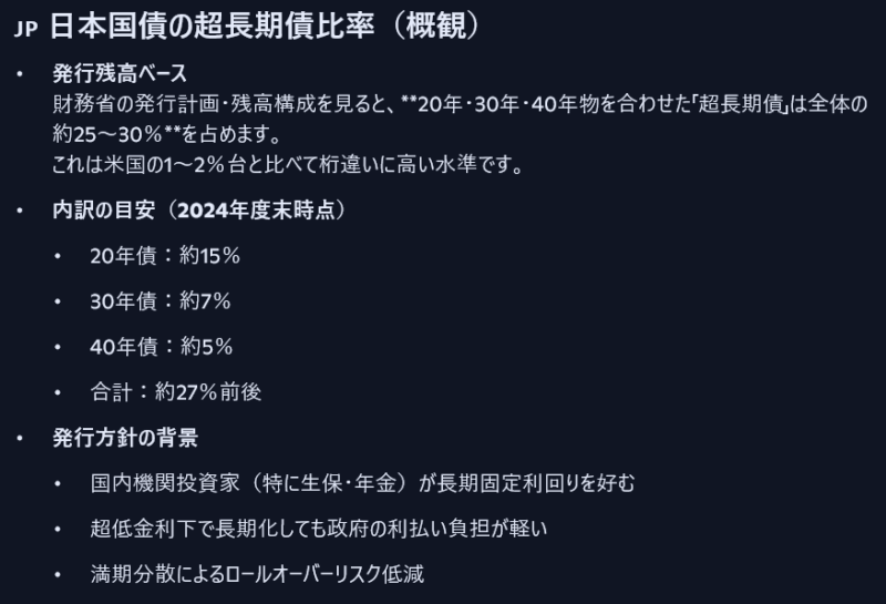 私が勘違いしていたのは「超長期債の発行割合」で、米国の発行割合は低い↓ことが分かりました😓