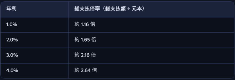 ↑ うーん、金利1%なら あまり問題無いけど・・・金利2%になったら返済額(支払い倍率)がエグイですね😱