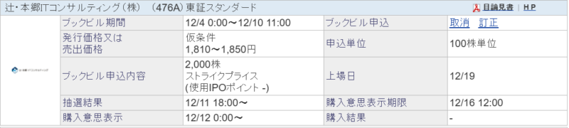 辻・本郷の方とは一緒に仕事をした時に「誠実な印象」があるのでIPO応募です!