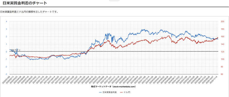 とはいえ、現状のドル円は「日米金利差のグラフ」を見ても分かると思いますが相関性が崩れています。