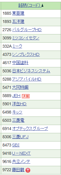 先月の決算発表後に10~15銘柄を「購入しても良いかな?」と監視銘柄↓にしているのですが
