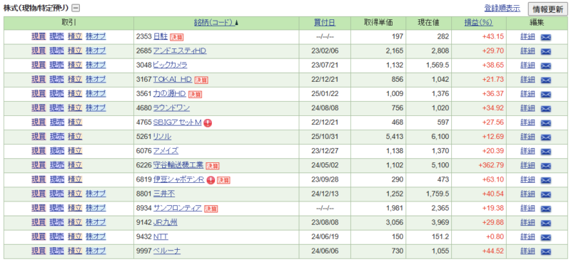 保有株ではイマイチな決算内容の銘柄も多かったのですが、主力の不動産株の決算内容が良かったので全体では大幅上昇になりました🫠