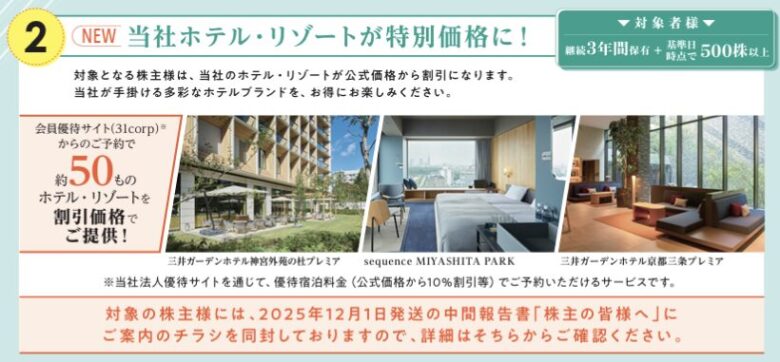 それでも三井不動産を「ホテル優待」として検討できるのはシルバー世代には朗報です!