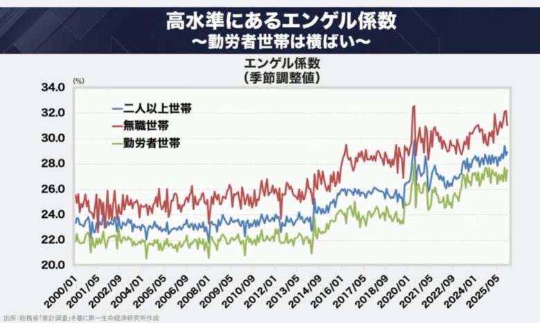 2022年以降に無職世帯のエンゲル係数の上昇が加速している!