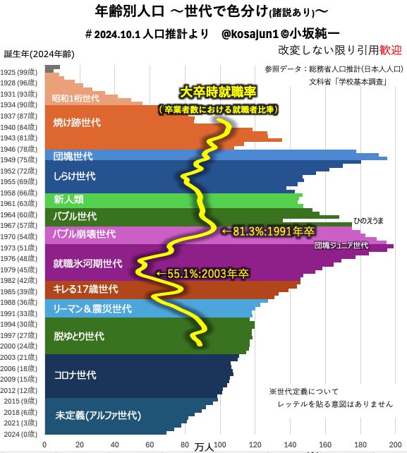 ↓ そして、ざっくりと「バブル世代」より上は「逃げ切りに成功した世代」(つまり運が良かった世代)だと思います🤔