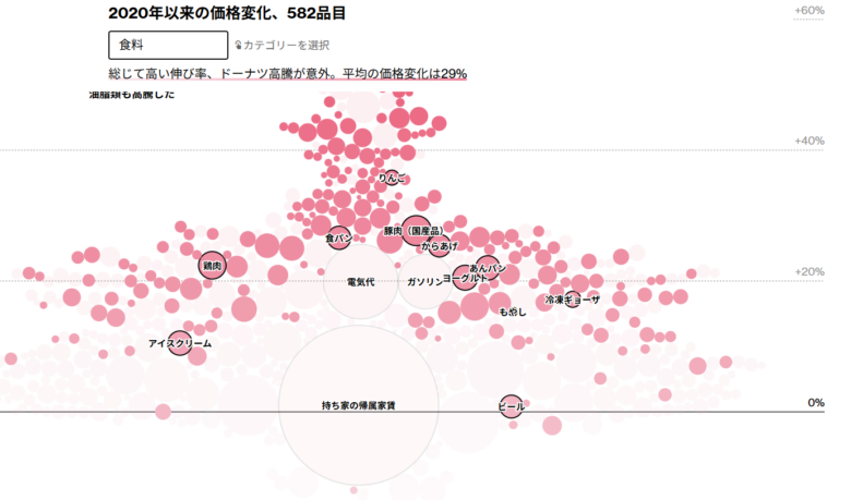 ブルーグバーグの記事内で、食品類別の寄与度・前年比を細かく分析しているのも秀逸です!