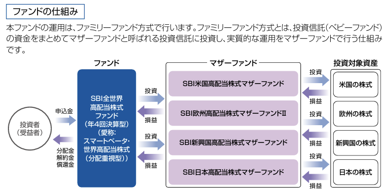 ちなみに全世界高配当(スマートベータ)は下記↓のようなマザーファンドで運用されています。