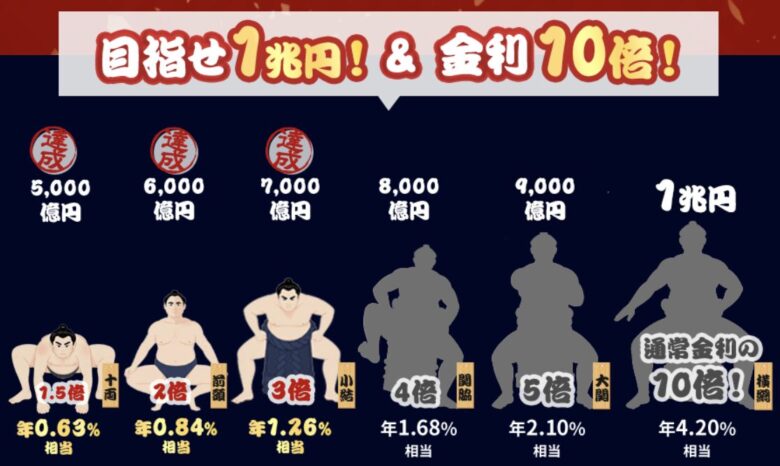 ↓ SBI新生銀行の「金利最大10倍キャンペーン」は 12月10日~開始されたのですが、現在7000億円↓まで達成されているようです!