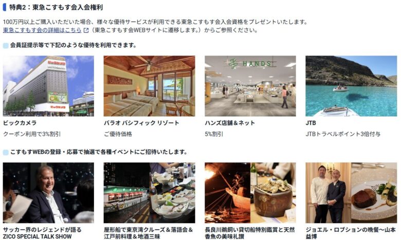 「東急コスモス会」の入会権利が貰えるのは、ちょっと面白いですね!