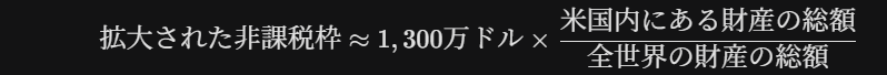 - 全世界の財産総額が仮に5億円の場合、非課税枠は(33万ドル / 333万ドル)の割合で計算されますが、それでも実際に課税される税額は非常に小さいか、ゼロになる可能性が高いです。