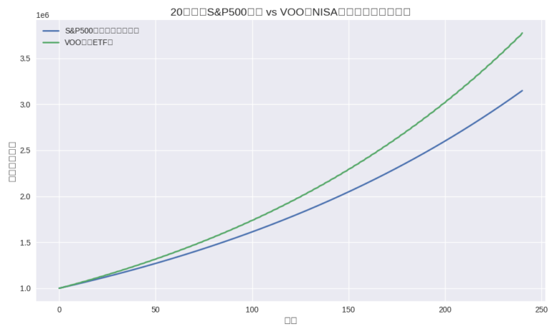 NISA口座で「VOO」と「S&P500」を保有した場合のシミュレーションをAIでしてみた!